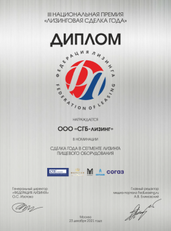 Сделка по финансированию оборудования для компании «Империя» (дистрибьютор ЗАО «Кондитерская фабрика») признана лучшей в сегменте пищевого оборудования на Национальной премии «Лизинговая сделка года 2021». Торжественная церемония награждения победителей Национальной премии прошла 23 декабря в онлайн-формате.