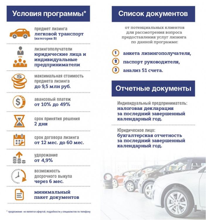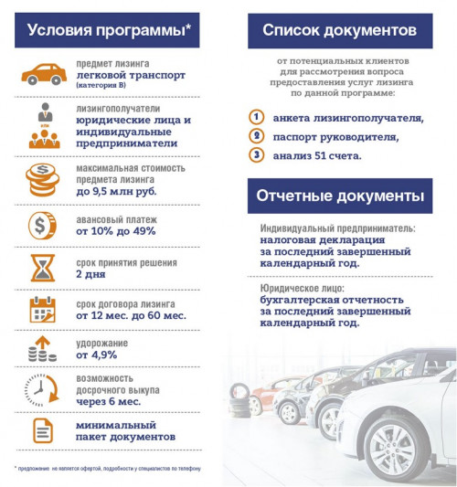 По программе снижена величина удорожания, минимальный уровень которого составляет теперь 4,9%. Размер авансового платежа уменьшен, его диапазон равен 10-49% от стоимости приобретения. Договор лизинга можно оформить на длительный срок – до 60 месяцев, что снижает размер выплат. При этом для подачи заявки необходимо всего четыре документа, которые будут оперативно рассмотрены — в течение двух дней.