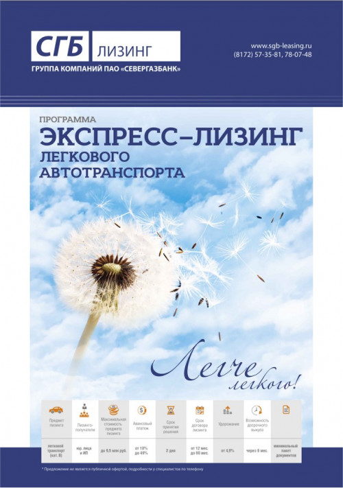 Компания «СГБ-лизинг» внедрила новую экспресс - программу по лизингу легкового автотранспорта, существенно улучшив условия для клиентов.