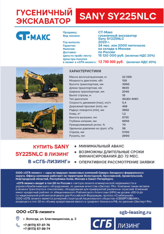 Скидка на покупку гусеничного экскаватора SANY SY225 NLC